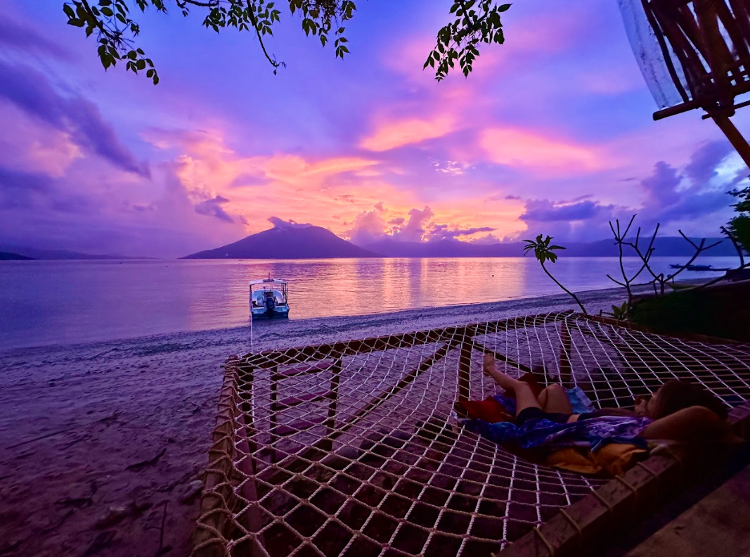 - The main bedroom, located on the mezzanine level, boasts a king-size bed and a private hanging hammock balcony.