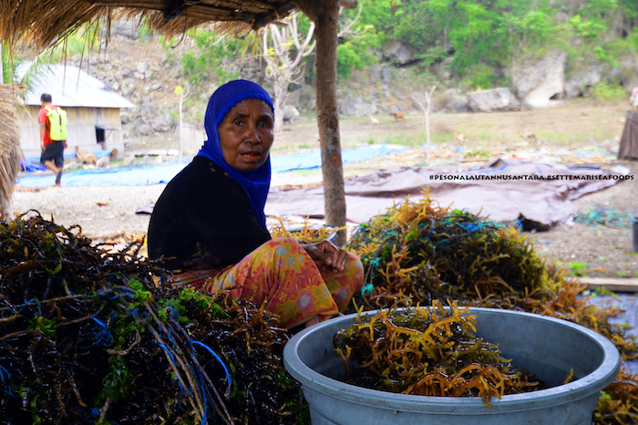 Our group company has been supporting the local seaweed farmers in NTT province; Kangge, Lapang, Rote, Semau and Timor islands and Luang island in Molucca Province and we’re in charge for operating the plantation in Alor region. We’ve been supporting the local farmers with free; seaweed seedling, seaweed-floating cage and professional assistant to cultivate the seaweed. By doing this we’re in line to support the “Blue Economy, Women Empowerment, Carbon Capture and Sustainability” program. Farmers are able to harvest and earn income every 45 days all year round without worrying of not being able to catch fish for food and to earn everyday income.